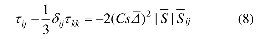 为亚格子应力。为使方程封闭,需要建立亚格子模型,常用的亚格子模型为Smagorinsky亚格子模型: