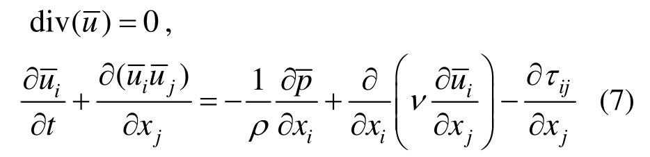 式中:ρ为流体密度;ui、uj为速度分量;p为压力;ν为流体运动粘度;上划线表示滤波后变量;