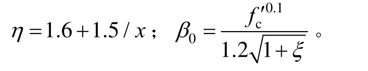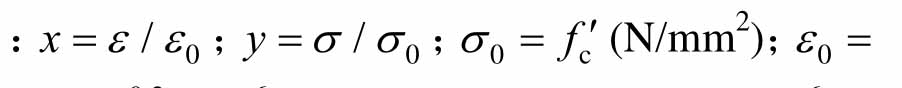 利用有限元软件 ABAQUS建立矩形钢管混凝土构件受剪有限元分析模型。钢材采用等向弹塑性模型,满足von Mises屈服准则,其应力-应变关系曲线采用有明显屈服平台的二次塑流模型,具体表达式参考文献[1],泊松比取0.3,弹性模量取206 GPa。冷弯钢管的角部由于在冷加工时发生一定塑性变形,使得角部钢材屈服点提高,与平板处钢材材性存在一定差异,在定义钢材材性时将平板和角部钢管分别定义其材料特性指标。核心混凝土采用ABAQUS中的塑性损伤模型,其应力-应变关系曲线采用韩林海(2016)[1]提出的考虑约束效应系数影响的,适用于被动约束状态下的矩形钢管混凝土的应力-应变关系模型,具体表达式如下: