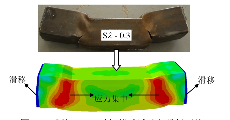 图11 试件Sλ-0.3破坏模式试验与模拟对比