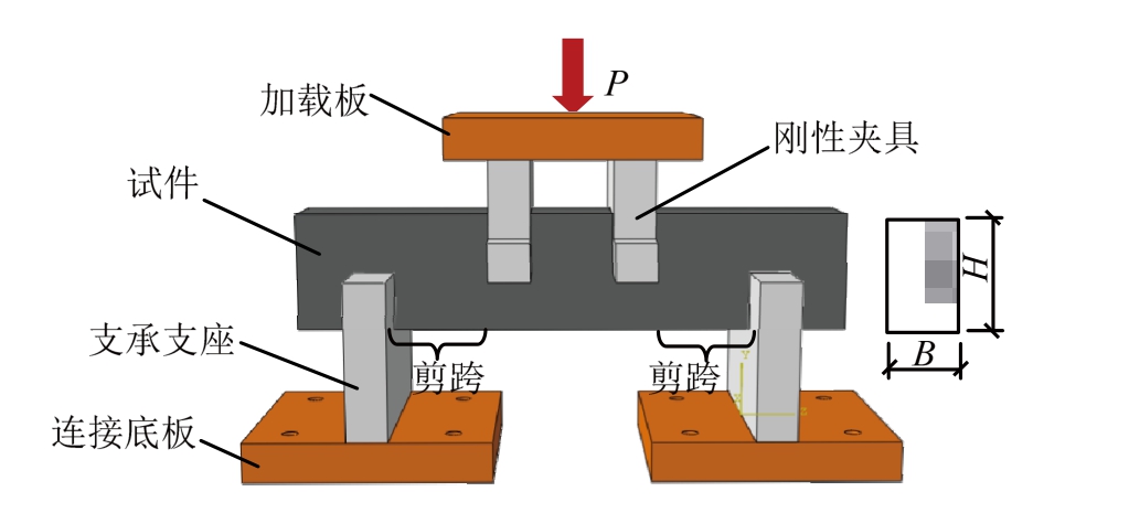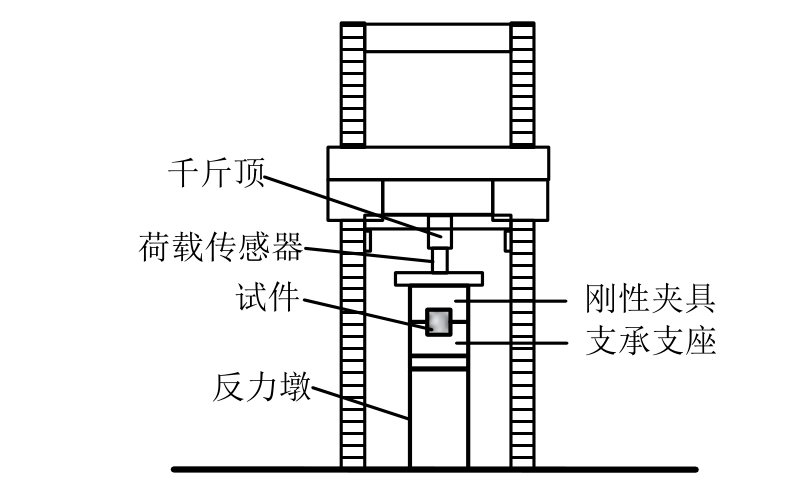 试验在兰州理工大学甘肃省土木工程防灾减灾重点实验室进行,试验中横向力由200 t千斤顶施加,千斤顶固定在最大试验力为 2000 kN的门式竖向加载装置上,加载装置简图如图2所示,实物照片如图 3所示。试验时构件水平放置,两端支承在特制的槽形支座上,横向剪力通过刚性夹具施加。