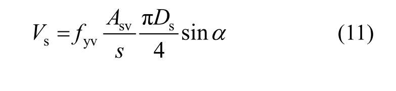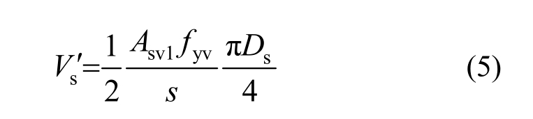 式中:Asv1为单根箍筋的横截面面积;s为箍筋的间距;fyv为箍筋的抗拉强度;Ds为箍筋中心所在圆周直径。