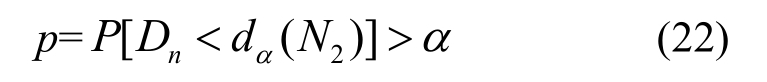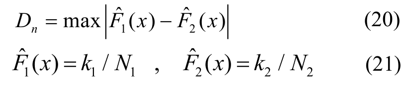 式中:N1、N2分别表示既定样本和被检验样本的样本容量;k1、k2分别表示两个样本中样本值小于或等于x的样本数。