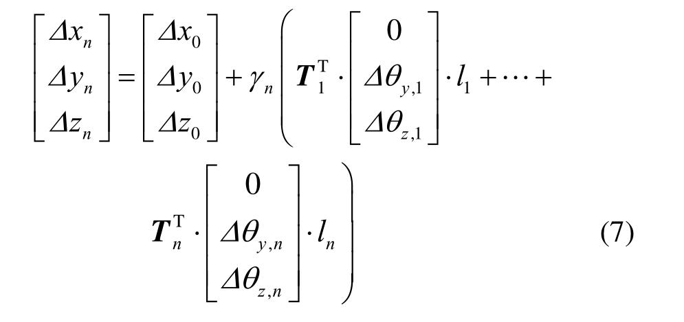 类似的,对于第n传播步的任意从属节点,其在整体坐标系下的位置偏差可表示为: