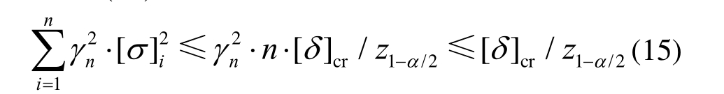 构件两端节点相对位置偏差的分布取决于转角偏差的方差,转角偏差的方差越大,节点的相对位置偏差越大。由于节点的相对位置偏差不能过大,且应满足已知节点偏差的统计分布规律,故整体坐标系下端节点相对位置偏差的标准差[σ]需满足式(12)约束方程,即: