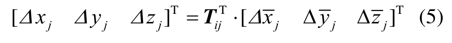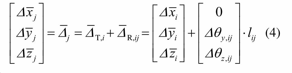 利用坐标转换矩阵,整体坐标系下节点j的位置偏差可表示为: