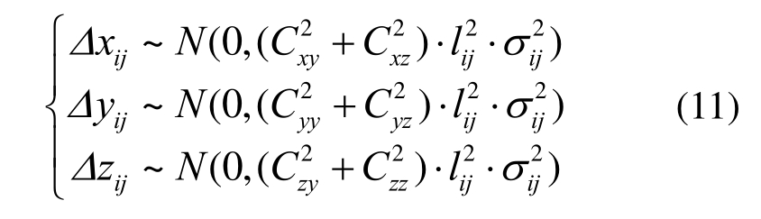 由式(10)可知,主节点和从属节点三个主轴方向上的相对位置偏差均服从正态分布,即: