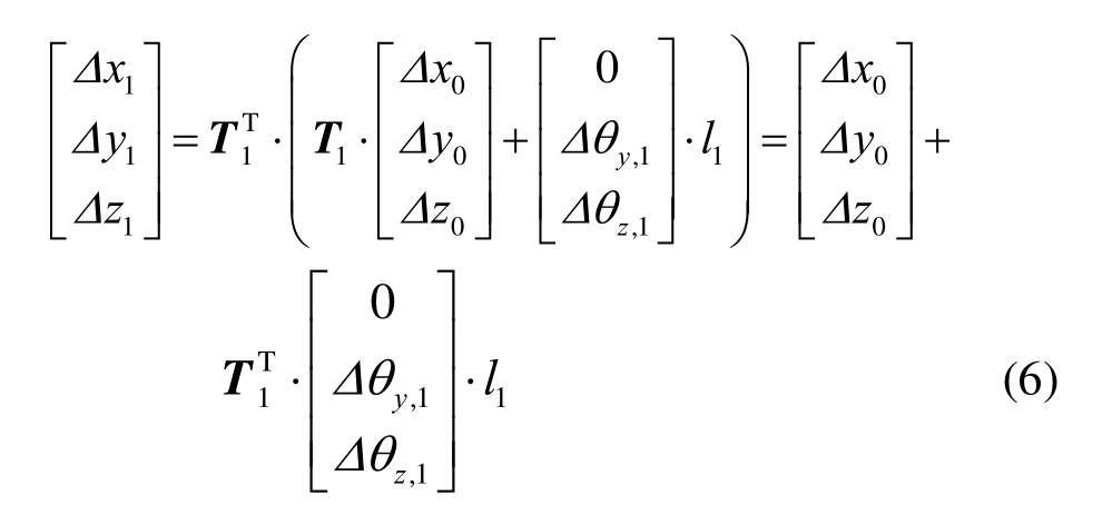 在整体坐标系下,假设节点i位置偏移分别为Δxi、Δyi和Δzi,则局部坐标系下节点i的位置偏移可表示为: