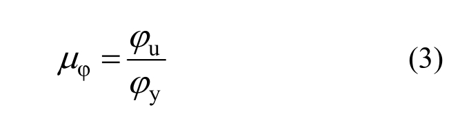 根据平截面假定,截面曲率延性系数μφ可用截面极限曲率与屈服曲率的比值来表示,即可按式(3)进行计算: