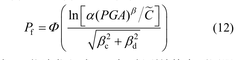 结构的易损性曲线表示不同强度的地震作用下,结构反应D超过破坏阶段定义的结构能力参数C的概率,可以按下式进行计算: