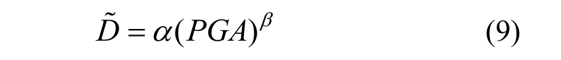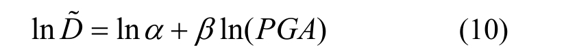 根据相关研究[24],地震需求参数的对数中位值为D~和地震动参数IM服从指数关系: