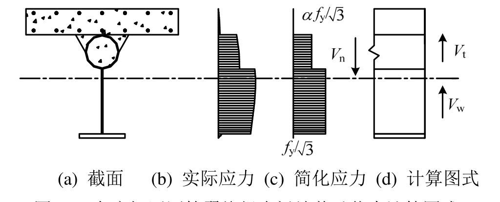 图14 负弯矩区圆管翼缘组合梁纯剪承载力计算图式