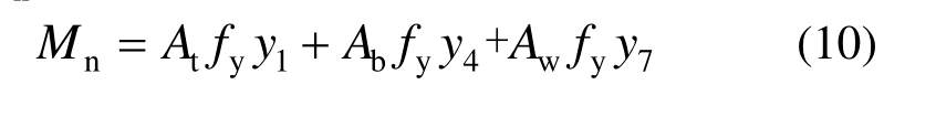 根据弯剪相关特性,在计算弯剪共同作用下负弯矩区圆管翼缘组合梁极限承载力前,需首先计算负弯矩区圆管翼缘组合梁的纯弯承载力Mn及纯剪承载力Vn。