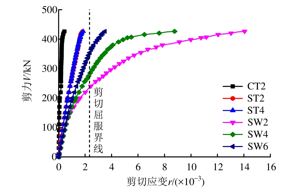 图10 试验梁NCTFCGS-1-1剪力-剪切应变曲线