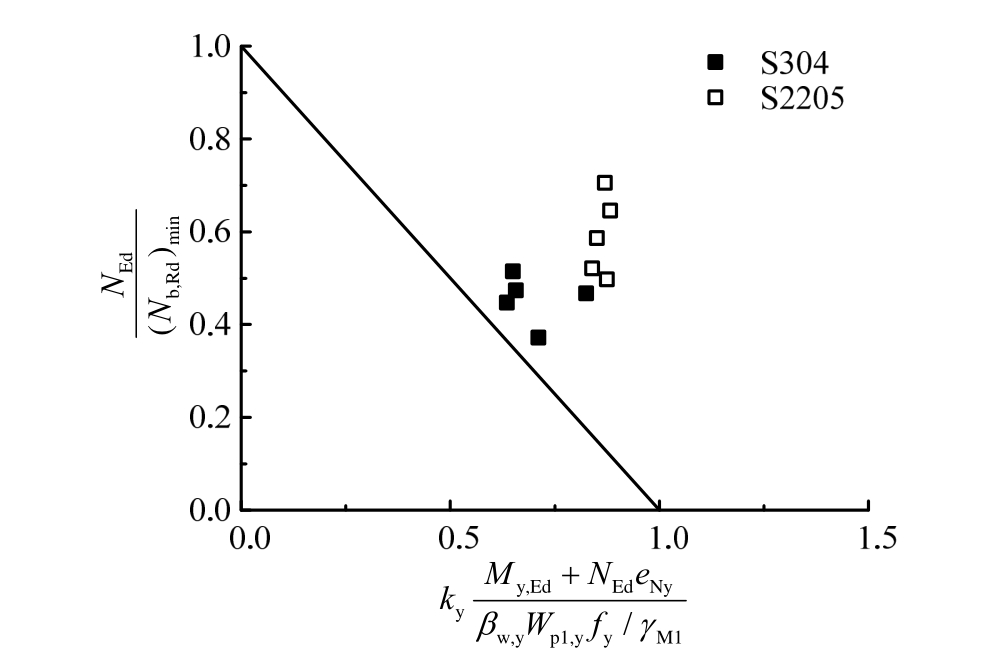 EN 1993-1-4针对不锈钢压弯构件的稳定性能有如下规定[28]: