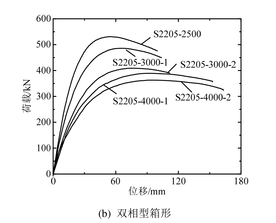 本文对 10根奥氏体型和双相型不锈钢焊接箱形柱进行了偏心受压试验,且在试验前对试件的材料性能及初始缺陷进行了量测。试验得到以下结论: