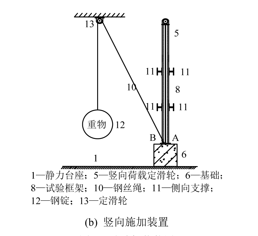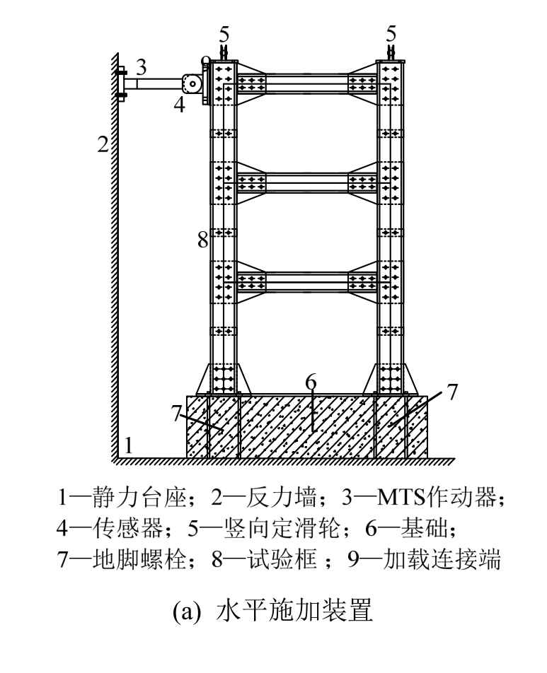 为了试验描述的方便,将框架的加载端定为左侧,非加载端定为右侧,将人与框架平行且左右对应站立时的前方称为前,后方称为后。