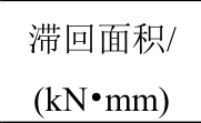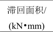 框架耗能指标如表 6所示。该类框架的抗震耗散能力在弹塑性阶段开始显现,各个框架的等效粘滞系数he在0.32~0.41,呈现出良好的耗能能力。钢板墙高宽比由0.5增加到0.8时,框架的等效粘滞系数he增加了2.38%,由0.8增加到1.0时,框架的减少了4.87%,说明改变钢板墙的高宽比对该类框架的耗散能力影响较小。框架柱的刚度系数由45.3增加到74.1时,框架的等效粘滞系数he增加了10.81%,框架柱的刚度系数由74.1增加到99.8时,框架的等效粘滞系数he增加了2.44%,说明刚架柱的刚度系数γ对该类框架的耗散能力影响较大。