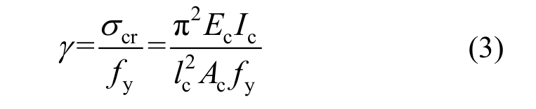 式中:H/mm、t/mm、B/mm分别为钢板的高度、厚度和宽度;Ec/MPa为柱 C型钢弹性模量;Ic/mm4为柱截面惯性矩;lc/mm为柱高度;Ac/mm2为柱截面面积。