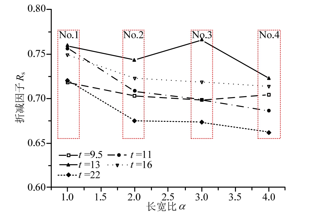 图2 强度退化与长宽比的关系