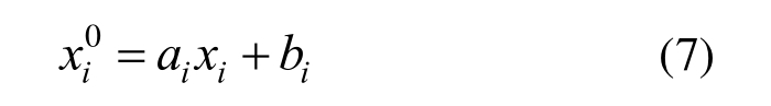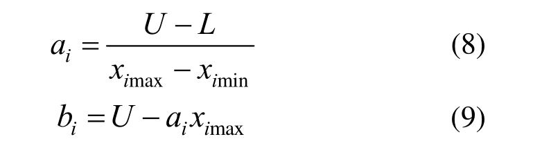 式中:ximin、ximax为数据序列中的最小、最大值;U、L为归一化范围的上、下限,分别为1和-1。