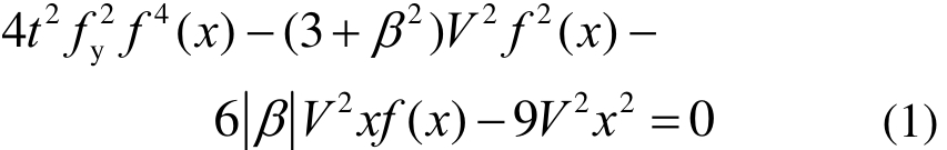 设腹板形心为原点,腹板形状关于横轴纵轴均对称,建立xoy平面直角坐标系,其边缘曲线形状f(x)为等应力屈服线,按式(1)计算,该公式亦可作为阻尼器的屈服承载力设计公式;阻尼器的弹性刚度按式(2)计算。