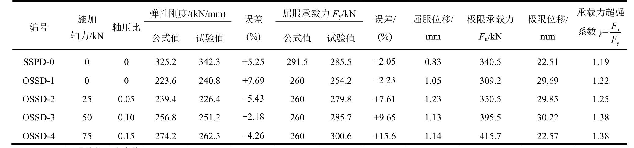(1) 试验结果表明,屈服承载力和弹性刚度设计公式满足工程精度需求,本文所给出的设计公式可直接用于不考虑轴压的阻尼器设计,对于承受轴压的阻尼器,需要进一步考察。