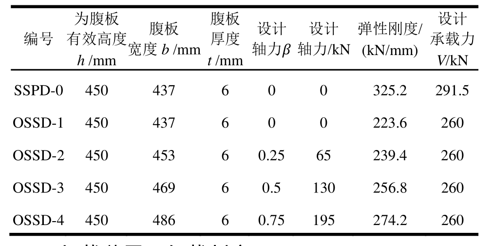 式中:fy为腹板材料的实际屈服强度;t为腹板厚度;V为阻尼器屈服承载力设计值;β为设计轴力N与设计承载力V的比值。b为腹板宽度,h为腹板有效高度。