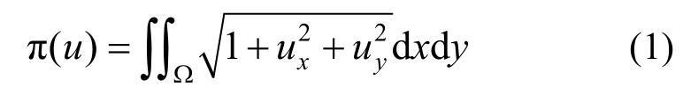 直角坐标系下,一膜曲面u(x,y)面积可表示为关于u(x,y)的泛函π(u):