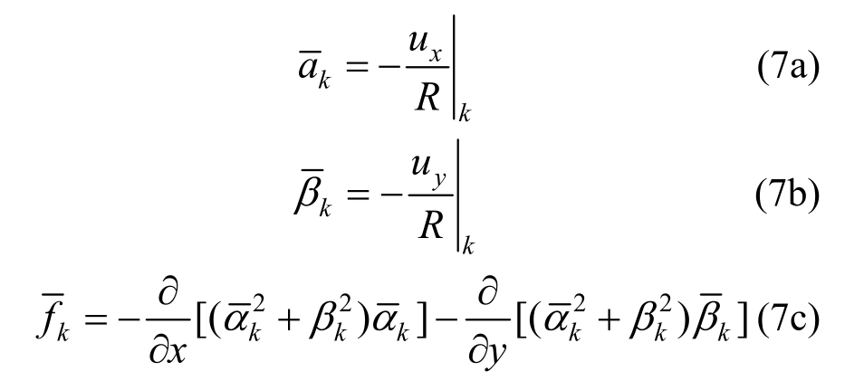 这样,给定第k步的解答,由式(7)计算线性化参数,求解式(8)可得第k+1步的解答,反复迭代直至收敛。值得一提的是,式(7)中的线性化荷载项