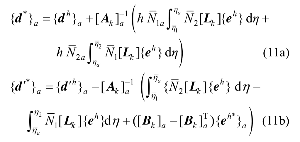 3) 全域超收敛解。将“拟线法”解看作是线法解,采用式(12)求得全域的二维有限元超收敛解: