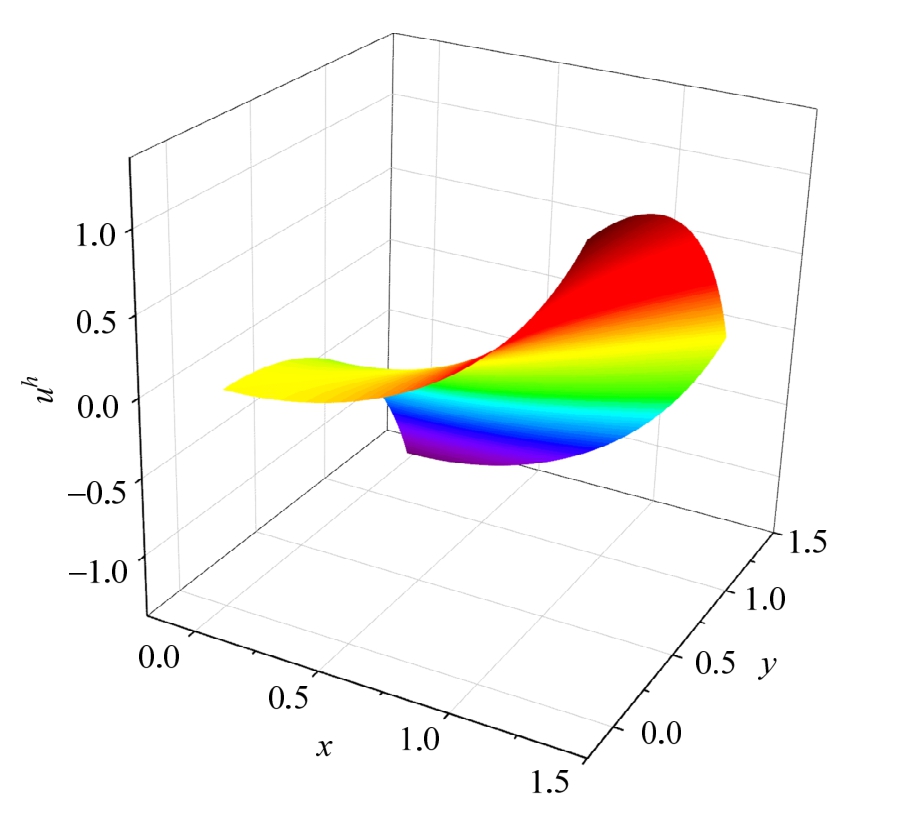图9m=2, Scherk第一曲面(不规则区域)自适应有限元解示意图