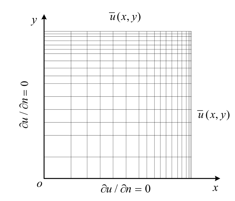 2) 确定加密位置。对于二维有限元网格的细分方式采用通条插线的方式,即对误差超限的单元所在的行(或列)单元通条插入网格线进行二分,二分的位置按照误差的平方在二分后的两个新单元上均等的原则来确定。