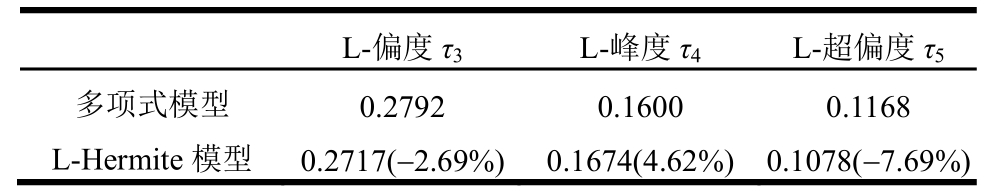 表1 多项式模型与4阶L-Hermite模型的线性矩