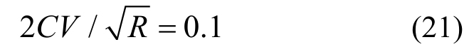 由式(24)可以得到本算例中的对数正态模型的变异系数为 0.253,因此由式(21)可得到需要至少