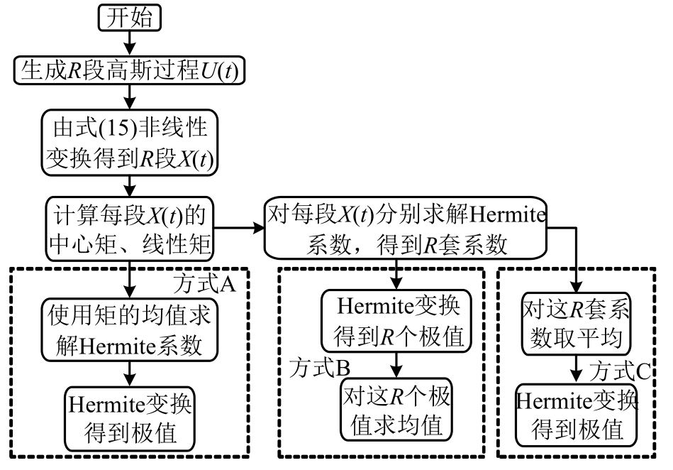 B:认为极值是随机变量,分别计算对应于每一个样本的 Hermite模型的系数,并由式(20)得到一个相应的变换极值,对得到的极值取平均作为最后的结果,这也是Winterstein[3]采用的方式。