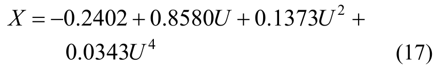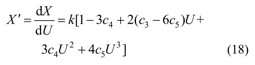 式(18)是一个3次方程,有3个根,可用以确定单调递增区间,具体的求解在此不再赘述。此外,还可以利用图像法绘制出X关于U的趋势图来定出单调区间,更为简单直观。