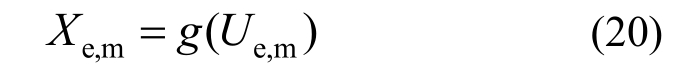 其中:下标e、m表示极值的均值;N表示分析时长内的峰值个数。通过非线性变换,可得到非高斯随机过程X(t)的极值[3]: