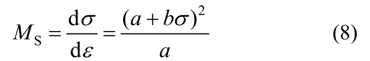 式中:a、b为常数。将式(7)对应变ε求导,得到侧限砂土试件在处于某轴向应力下的切线模量: