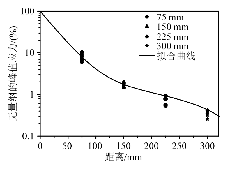 图11 峰值应力随传播距离的衰减曲线