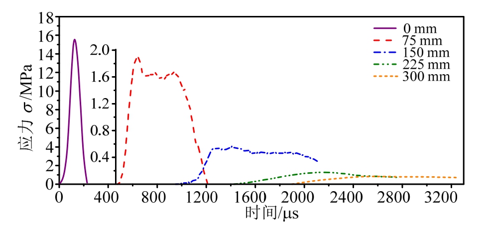 Fig.10 Stress wave at different propagation distances