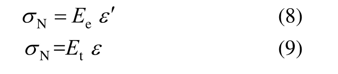 其中:ε为B点截面的总轴向应变;ε′为弹性轴向应变;ε′为损伤轴向应变。