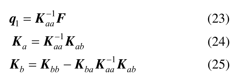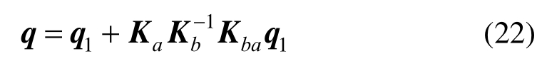 式中,q1为初始结构位移,由式(22)可知,损伤后的结构位移可以隔离成初始结构的位移和损伤引起的位移,此外,引入的未知量
