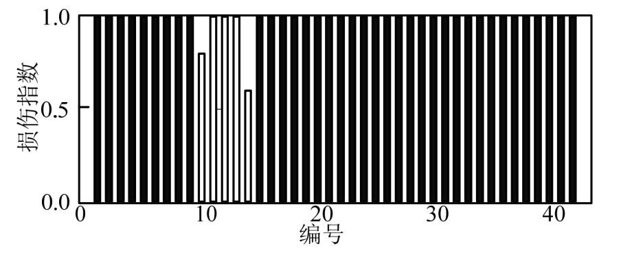 当目标函数收敛时,最终求解出桁架结构单元的损伤指数α,实现了结构的损伤识别。