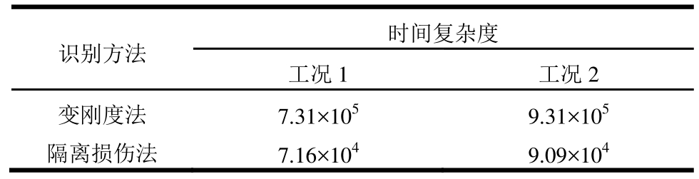 识别方法 时间复杂度 工况1 工况2变刚度法 7.31×1059.31×105隔离损伤法 7.16×1049.09×104