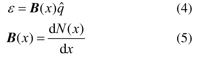 N(x)为表征位移模式的插值形函数。考虑单元i的位移-截面应变关系,利用几何方程,推导出截面轴向应变的分布函数为:
