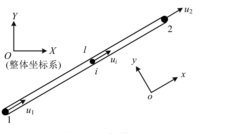 以平面杆单元i的损伤为例,如图1所示。单元节点位移为: