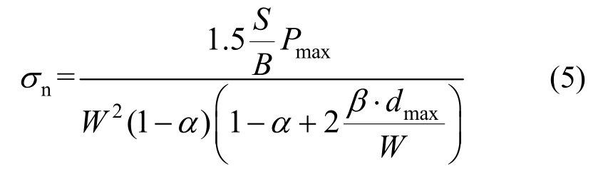 式中:σN为试件破坏时的名义应力;σn为考虑初始裂缝影响的名义应力。对于三点弯曲梁,A(α)=(1-α)2。