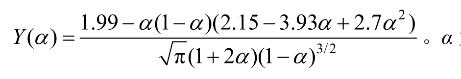 式中:Y(α)为几何形状参数,可由应力强度因子手册查取,对跨高比S/W=4的三点弯曲梁试件[1,32],