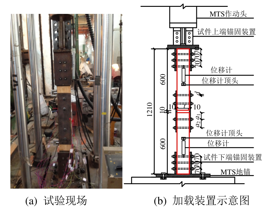 根据ASTM D5652-95[25]试验标准,试验采用两阶段加载。预加载以1.5 mm/min的加载速率单调加载,至试件预计承载力的 10%时停止加载并卸载。正式加载采用1 mm/min的加载速率,以位移控制实施加载,至试件破坏且荷载下降至约80%停止加载。